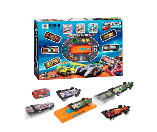 Set de Pista de Carreras con Lanzador y Vehículos Deportivos Miniatura