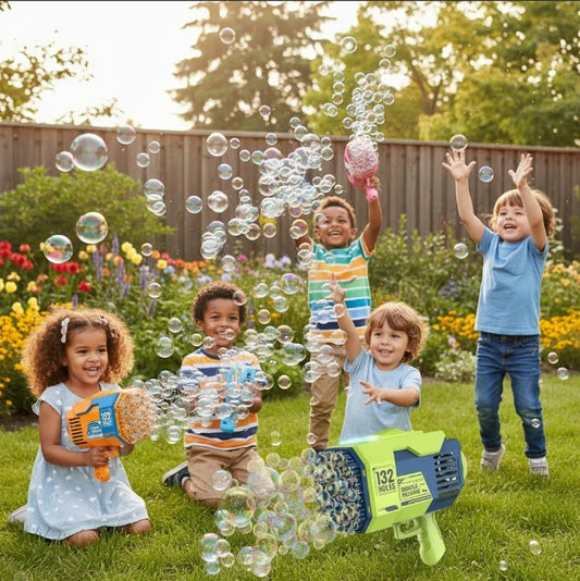Pistola Lanzadora de Burbujas Automática de 132 Orificios: ¡Potente, Recargable y Cientos de Burbujas por Segundo!